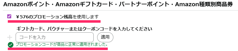 正常にクーポンが適用されると上記のような表示になります。