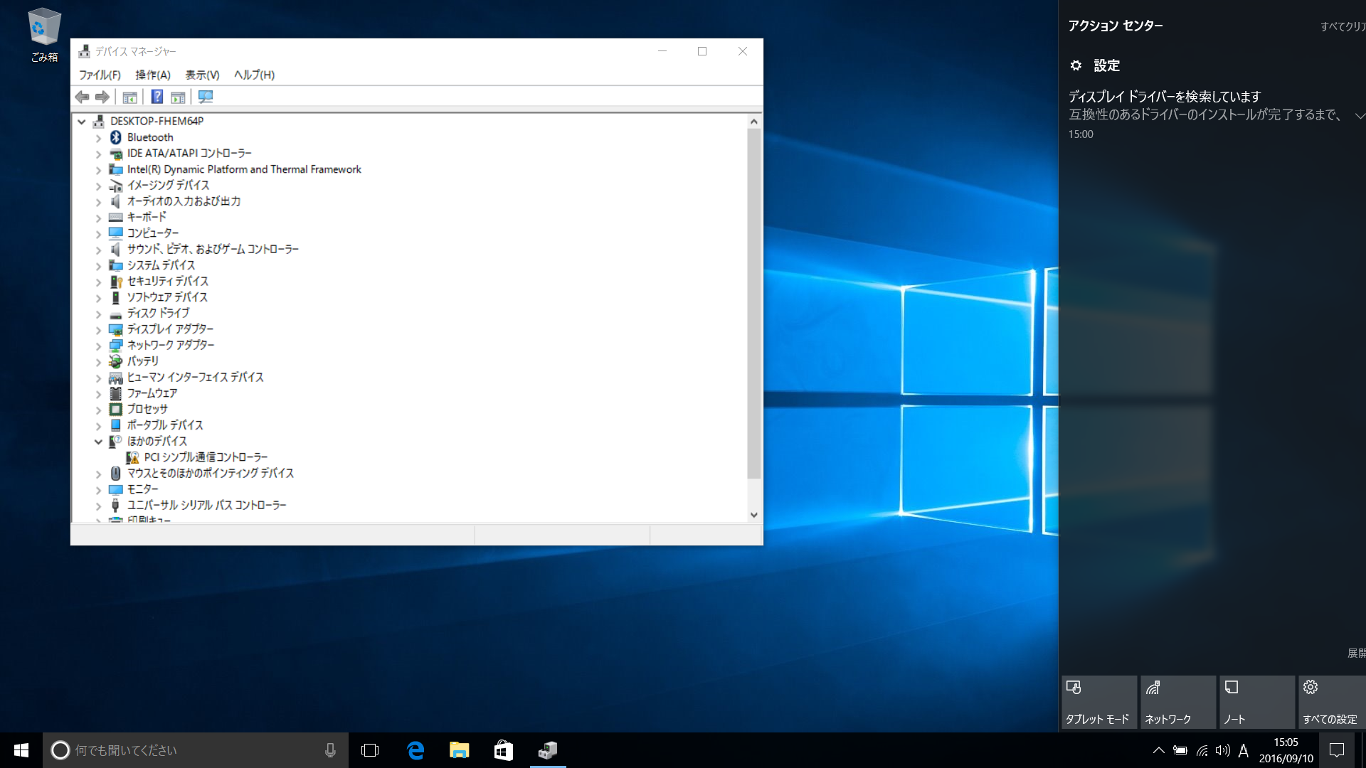 最初は、「PCI シンプル通信コントローラー」と「SM バスコントローラー」がビックリマーク付いてましたが、しばらくすると自動でドライバがあたって何もエラーがなくなった。
