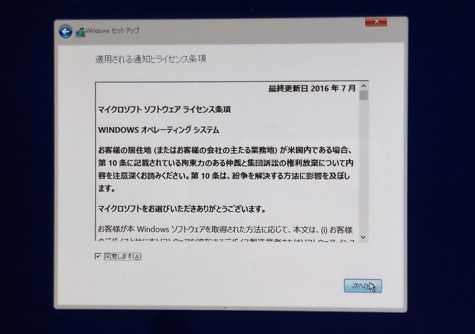 Windows10 日本語版をクリーンインストール