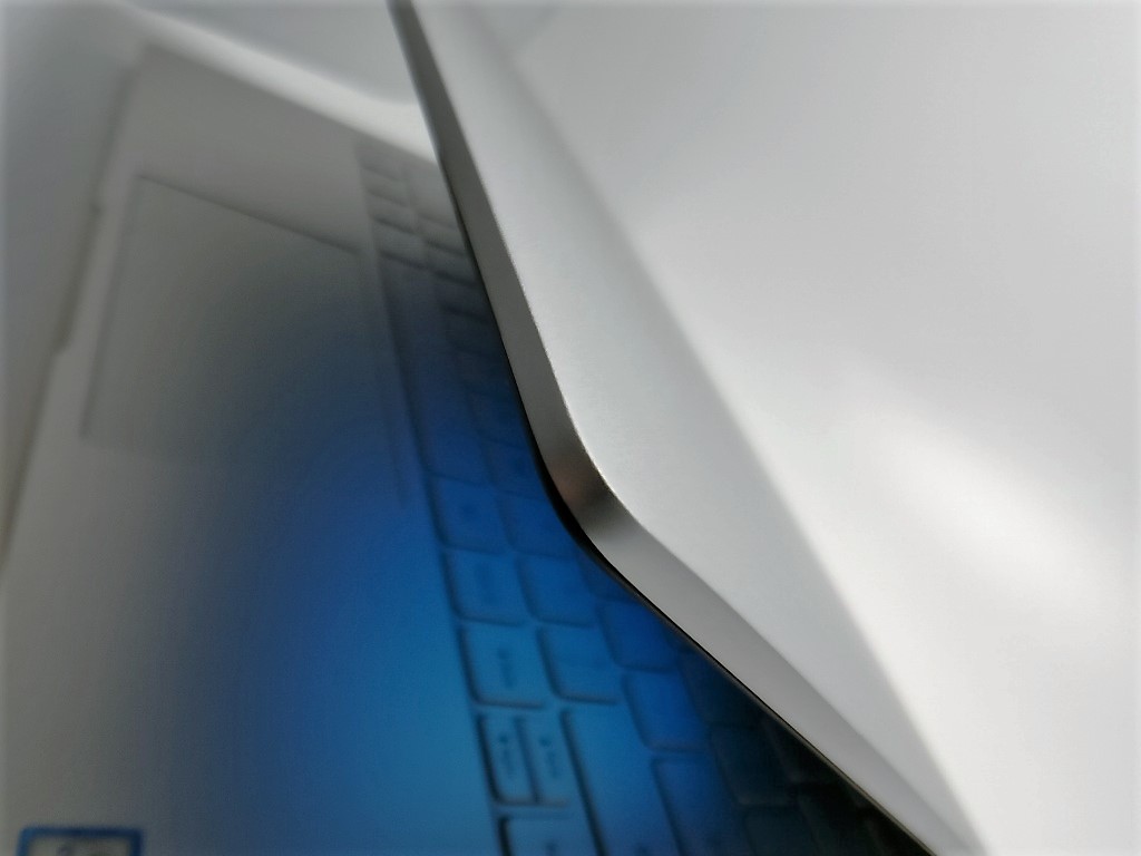 ディスプレイ面のエッジはやはり金属との間に黒いプラパッキンが挟んであるが、ラップトップはスマホと違って覗きこんで近くで見るものではないので特に気にならない。