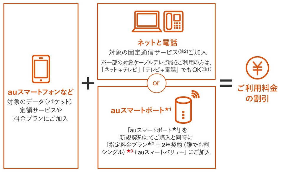 auスマートバリューなるものが毎月500円割引されますが、スマホ契約と自宅のネットやauスマートポートのどちらか契約しないといけないので、必要ない方はauスマートバリューでは割引できなさそう。
